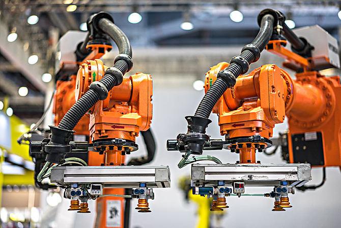 工厂机器人是指在制造业生产过程中使用的一类自动化机器人,主要用于替代或辅助人力完成重复性、危险性、高精度和高效率的生产任务,从而提高生产效率和质量。工厂机器人可以采用各种不同的组织结构和控制系统,如SCARA机器人,平面机器人,垂直多关节机器人等。它们能够在生产线上完成物料搬运、加工、装配、检查等多种工作,并且能够根据生产任务的需要进行编程和调整。工厂机器人已经成为现代制造业中不可或缺的一部分,被广泛应用于汽车制造、电子制造、食品加工等领域。
